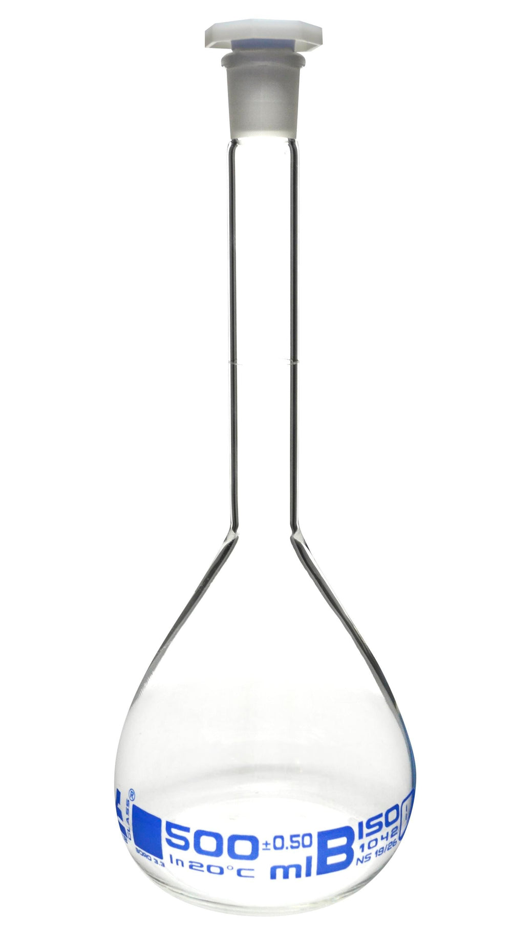 Eisco Labs Volumetric Flask, Glass with Polypropylene Stopper, Class B, 500ml