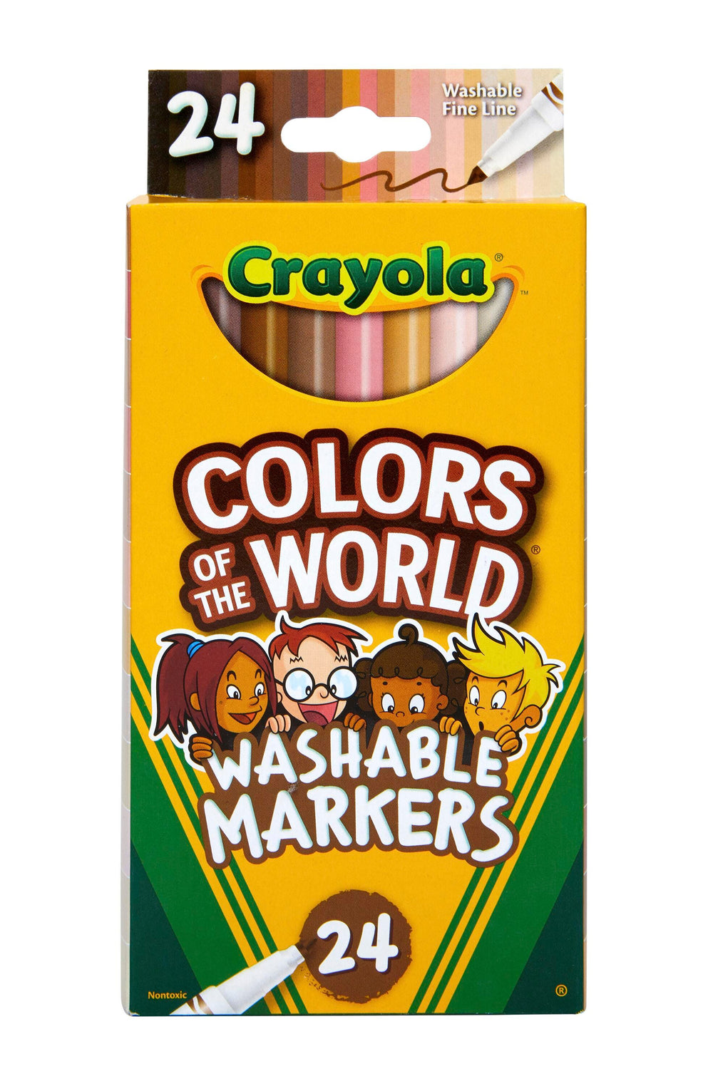 Crayola Colors of the World Washable Markers, Fine Line, Assorted Colors, Set of 24
