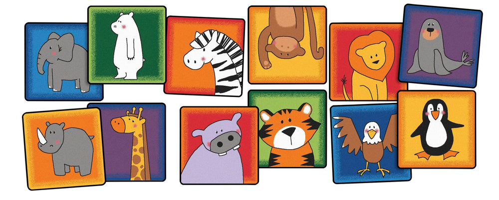 Carpets for Kids KID$Value PLUS Zoo Animals Seating Carpet, Squares, 16 x 16 Inches, Set of 12, Multicolored