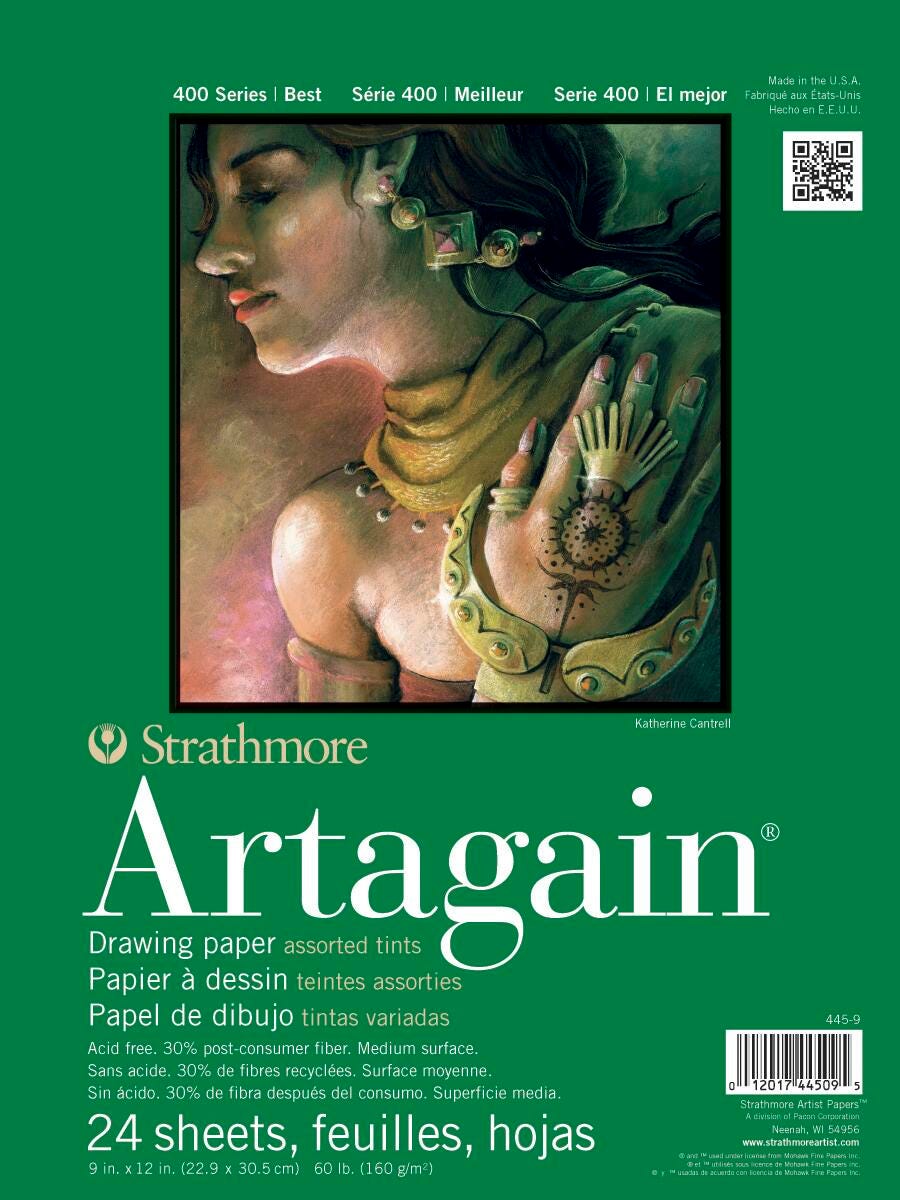 Strathmore Artagain 400 Series Paper Pad, 9 x 12 Inches, Assorted Colors, 24 Sheets
