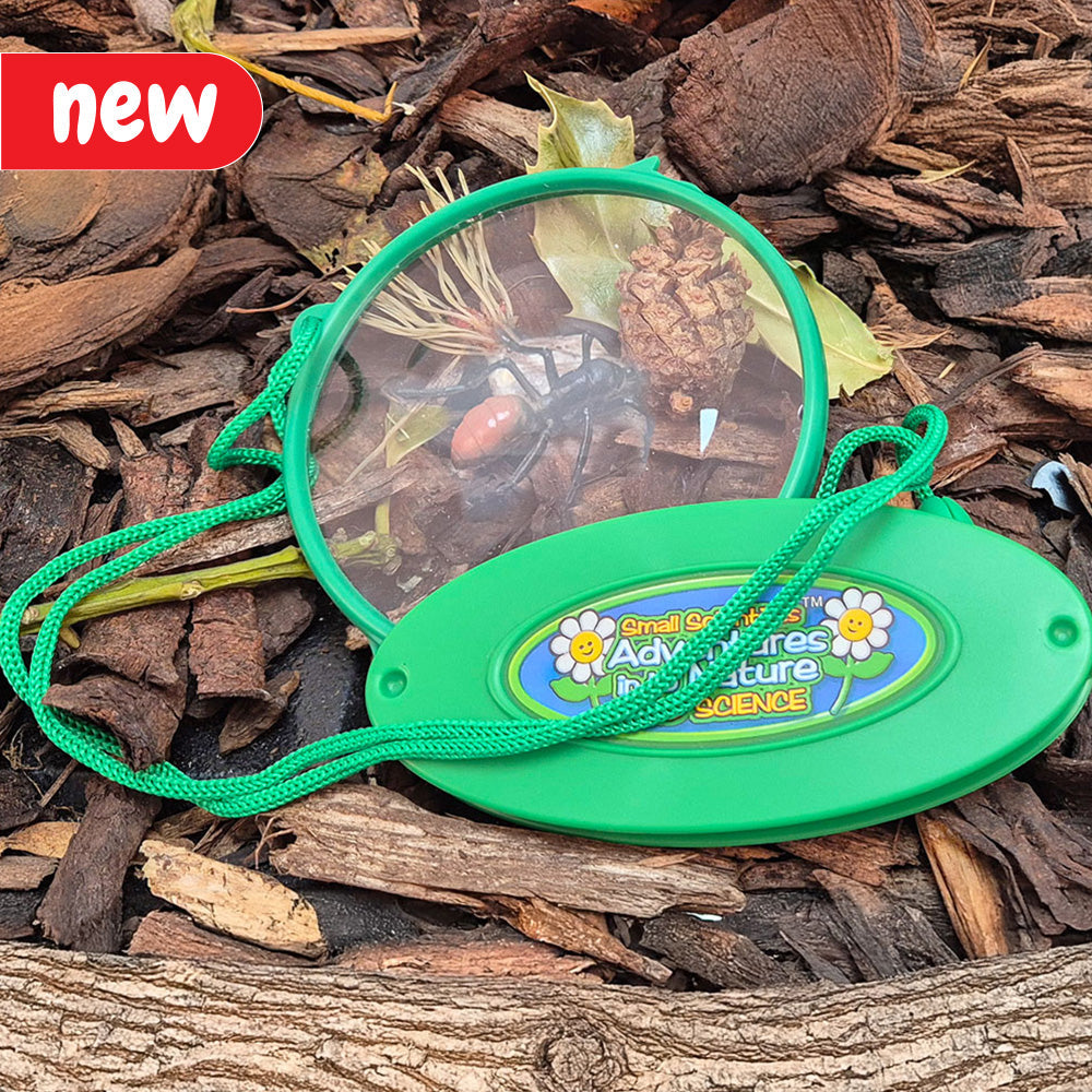 Folding handheld magnifier with safety wrist strap. For Early Years, SEN, Forest Schools.