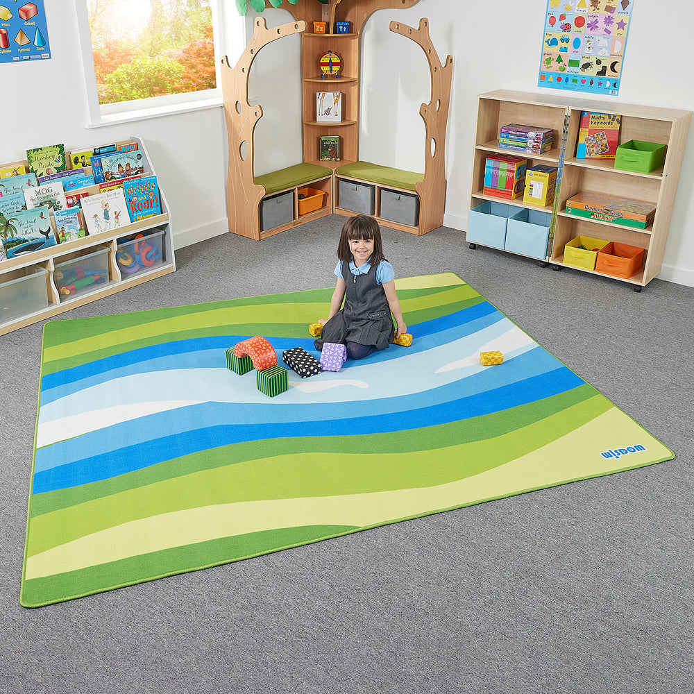 Classroom carpets are a great addition to the early years’ classroom. With our Profile Riverbank Classroom Carpet children can use their imaginations as they play down by the riverbank – or simply use as a reading area for circle time. Noise level reduction provided by carpets helps improve learning and children will feel more comfortable sitting on carpet.