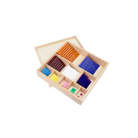 This material consists of a 10-compartment beechwood box with colour- coded plastic squares and rectangles.; Age 4 Years Old