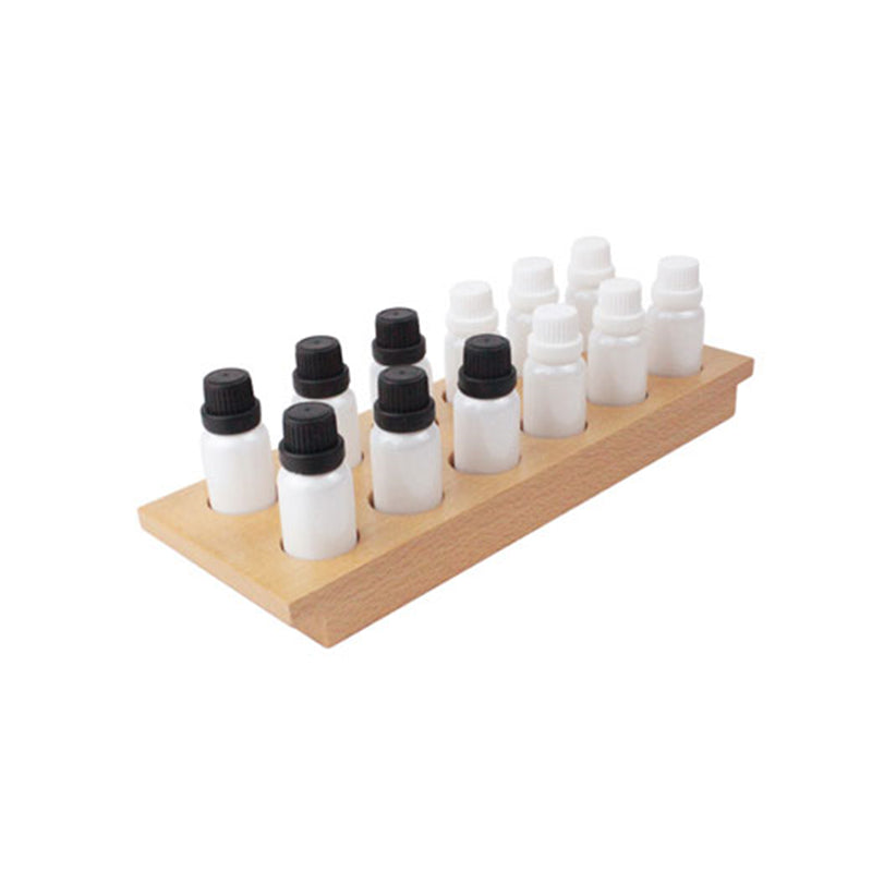 2 sets of 6 sealed wooden cylinders that make a distinctive olfaction.; Age 3.5 Years Old