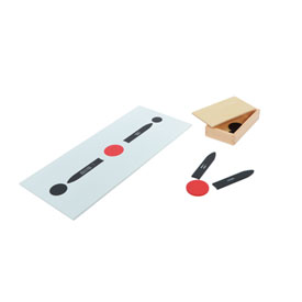 The set includes a chart and a wooden box containing circles and arrows with the printed questions for beginning analysis. The First Chart and Box is used to analyze the basic parts of a sentence and identify their functions. It introduces the predicate, subject and direct