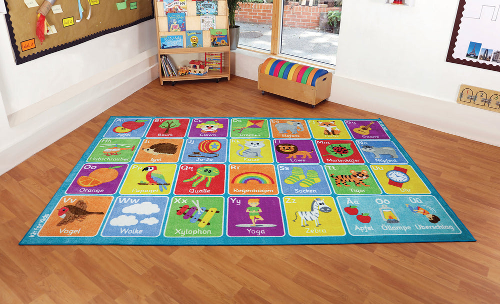 Large German Alphabet carpet, perfect for learning word and letter recognition in a fun, interactive way.