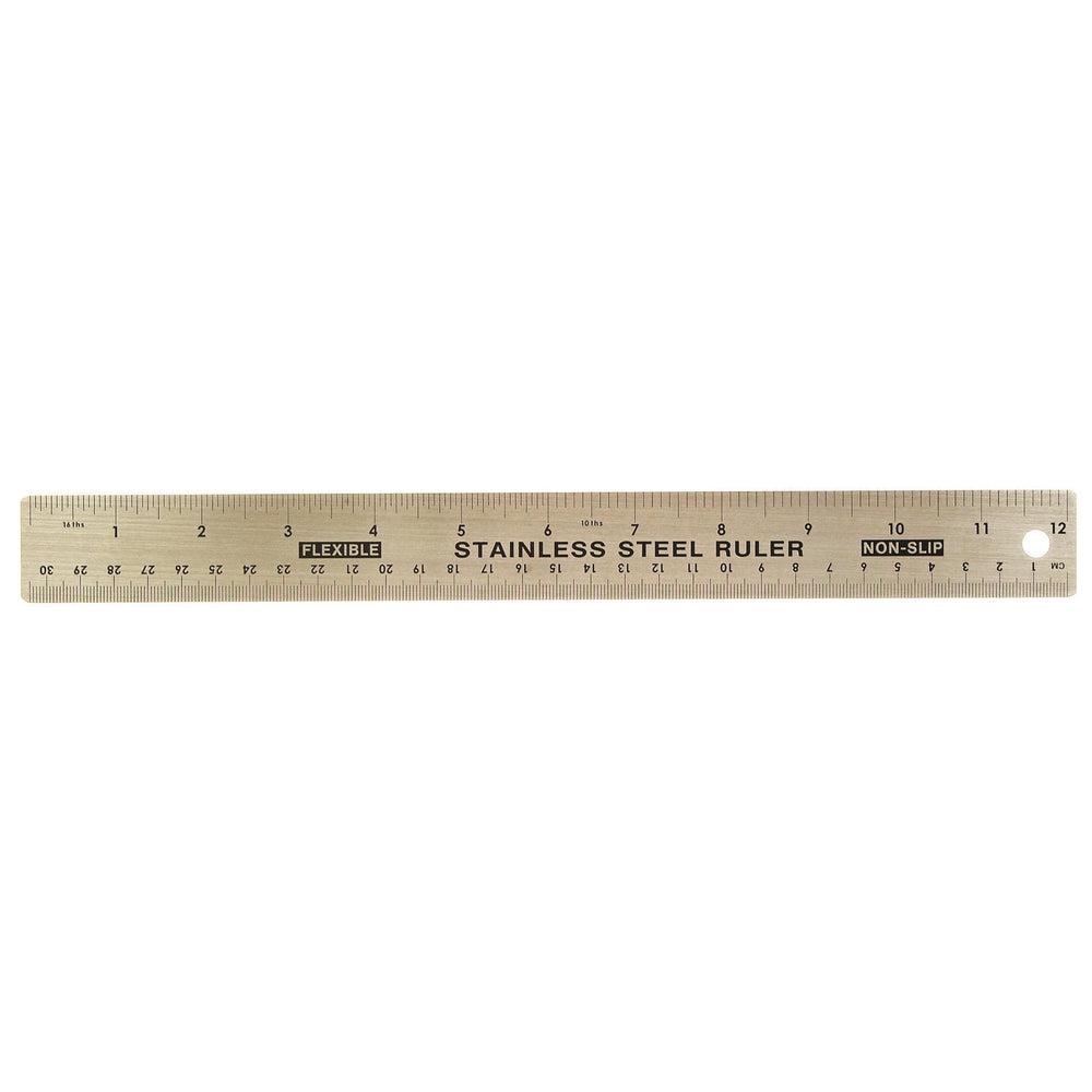 Flexible stainless steel ruler from Helix, featuring a non-slip cork backing to prevent sliding on drawing surfaces.