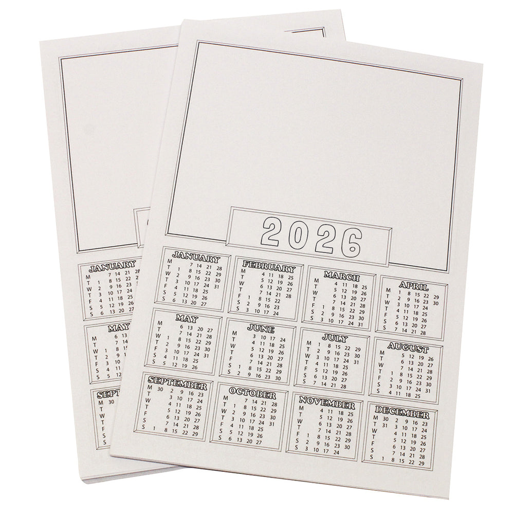 A4, 200gsm white card. Half page blank, above calendar dates.