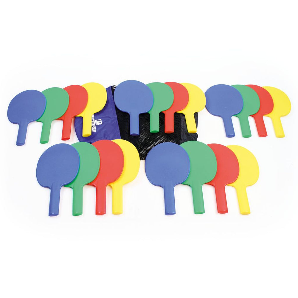 Lightweight plastic bat with a short handle. Suitable for use with an array of foam or plastic balls. Supplied as a set of 4 (1 of each blue, green, red, yellow) or a bag of 20. Bat length: 27cm.