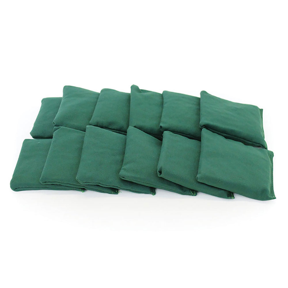 Filled with synthetic granules. Availabel in blue, green, red and yellow, in a bag of 12 of one colour, or in a mixed bag of 12 or 36. Size 14cm L x 10cm W.