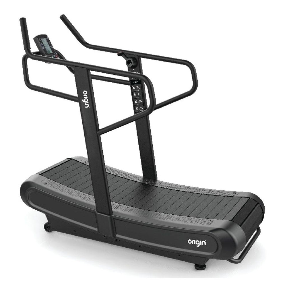 The curved treadmill features four resistance levels and a multitude of programs including time, distance, calories, and interval training and can be used by beginner and experienced athletes.