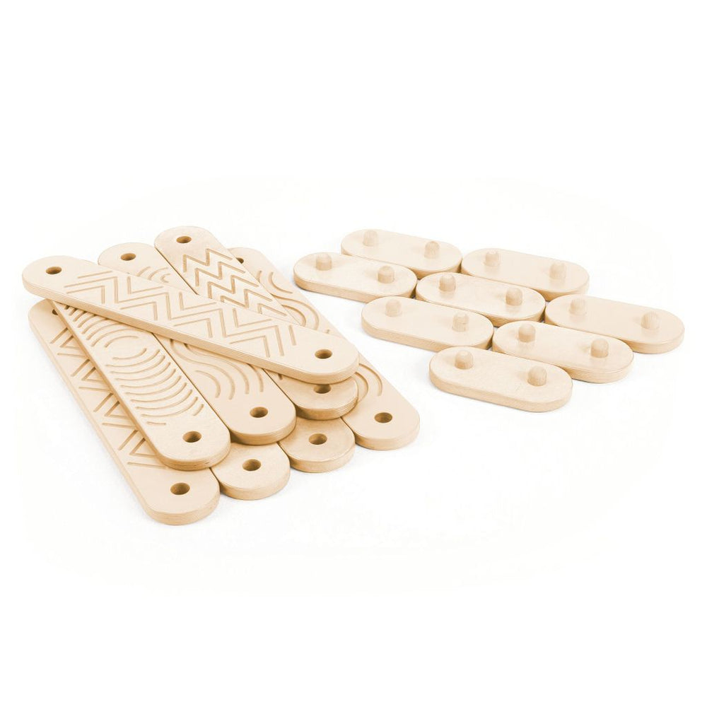 • Designed so can be set out in various shapes • Engraved design on each plywood board • Includes 8 boards and 8 connectors • Board size: 60 L x 10 W x 4cm H (with connectors)