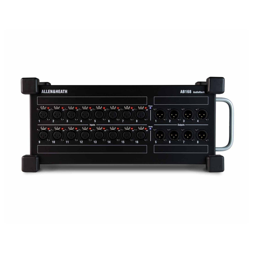 • Durable and portable 240X stage box • 16 configurable XLR inputs • 8 assignable XLR outputs • Features a convenient carry handle and rubber bumpers, Introducing the Allen and Heath AB1608 digital stage box AB168 is a 48kHz portable remote AudioRack for use with Qu, Avantis and SQ mixers, and with the AHM-64 audio matrix processor. Featuring 16 mic preamps with Phantom Power indicators and 8 XLR line outs, AB168 runs on Allen & Heath’s proprietary dSNAKE protocol. Adding the AB168 to a compatible system allows some or all I/O to be positioned up to 100m from the mixer. The unit connects over a single Cat5 cable to the mixer or AR2412 AudioRack via a secure dSNAKE EtherCon port. A second EtherCon port is provided for daisy-chaining to another AB168 box or connection of a ME personal mixing system. AB168 auto updates its firmware to synchronise with the system. The rack’s rugged design, including rubber bumpers, renders it highly roadworthy and allows it to be placed on the stage floor during performances. Weighing in at just 4.8kg and featuring a sturdy carry handle, AB168 is also designed for maximum convenience and portability. What’s in the box? - 1 x Powercon Link cable - 1 x Short 13A to PowerCon cable - 1 x CAT6 Ethernet cable 30m on drum