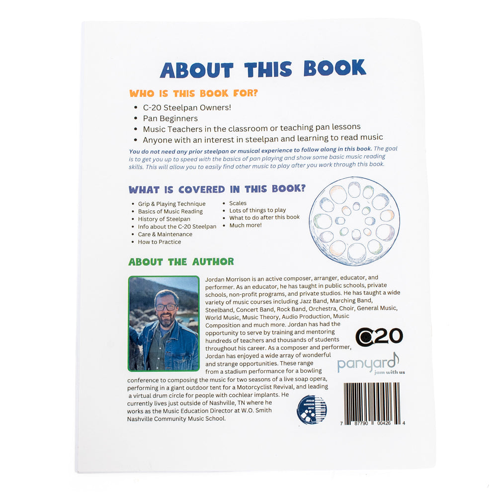 • A great way to begin your (or your student's) C-20 Steelpan journey • Suitable for absolute beginners to those with a few years of experience • Perfect for both group and individual lessons • Covers practice tips, scales, exercises/etudes and songs • The steelpan’s history opens doors for cross-curricular learning • Includes online backing tracks • A great way to begin your (or your student's) C-20 Steelpan journey • Suitable for absolute beginners to those with a few years of experience • Perfect for both group and individual lessons • Covers practice tips, scales, exercises/etudes and songs • The steelpan’s history opens doors for cross-curricular learning • Includes online backing tracks • A great way to begin your (or your student's) C-20 Steelpan journey • Suitable for absolute beginners to those with a few years of experience • Perfect for both group and individual lessons • Covers practice tips, scales, exercises/etudes and songs • The steelpan’s history opens doors for cross-curricular learning • Includes online backing tracks, This book caters to a wide range of players, from absolute beginners to those with a few years of experience on the pan. Its primary aim is to help you master the fundamentals of pan-playing and develop essential music reading skills. By the time you finish the book, you’ll be equipped to explore more music on your own. Designed for both group and individual learning, this book is a valuable resource for educators and aspiring players alike, guiding them through the process of learning to play the C-20 Steelpan. Topics covered include grip and playing technique, instrument care and maintenance, basic music reading, the history of the steelpan, and details about the C-20 steelpan itself. It also offers practice tips, scales, exercises, etudes, and guidance on what to do once you’ve completed the book. If you follow along diligently from start to finish, you should feel confident moving on to more challenging music. The "How to Play the C-20 Steelpan" book is crafted to support anyone, whether you're new to music or steelpan, or you already have some experience. It aims to help you progress steadily without overwhelming you. Along the way, you'll learn popular Caribbean standards and some familiar tunes while refining your pan-playing basics. In the Classroom This book is a versatile resource. It delves into the history of the steelpan, which makes it ideal for cross-curricular instruction, while also providing students with a solid foundation and respect for the instrument. Pages dedicated to grip, technique, care, and maintenance can easily be displayed in the classroom for students to reference. With a variety of etudes, exercises, pieces, and scales, this book will quickly get students playing, offer them plenty of material to work with, and prepare them for the next stage of their musical journey. Difficulty Level: Beginner to Intermediate About the Author Jordan Morrison is a composer, arranger, educator, and performer. With extensive experience teaching a variety of music courses, including Jazz Band, Steelband, Music Theory, and more, Jordan has mentored hundreds of teachers and worked with thousands of students in schools, non-profits, and private studios. As a composer and performer, he has explored diverse opportunities—from performing at a bowling conference to composing music for a live soap opera and leading a virtual drum circle for people with cochlear implants. Jordan currently serves as the Music Education Director at W.O. Smith Nashville Community Music School and resides just outside Nashville, TN.