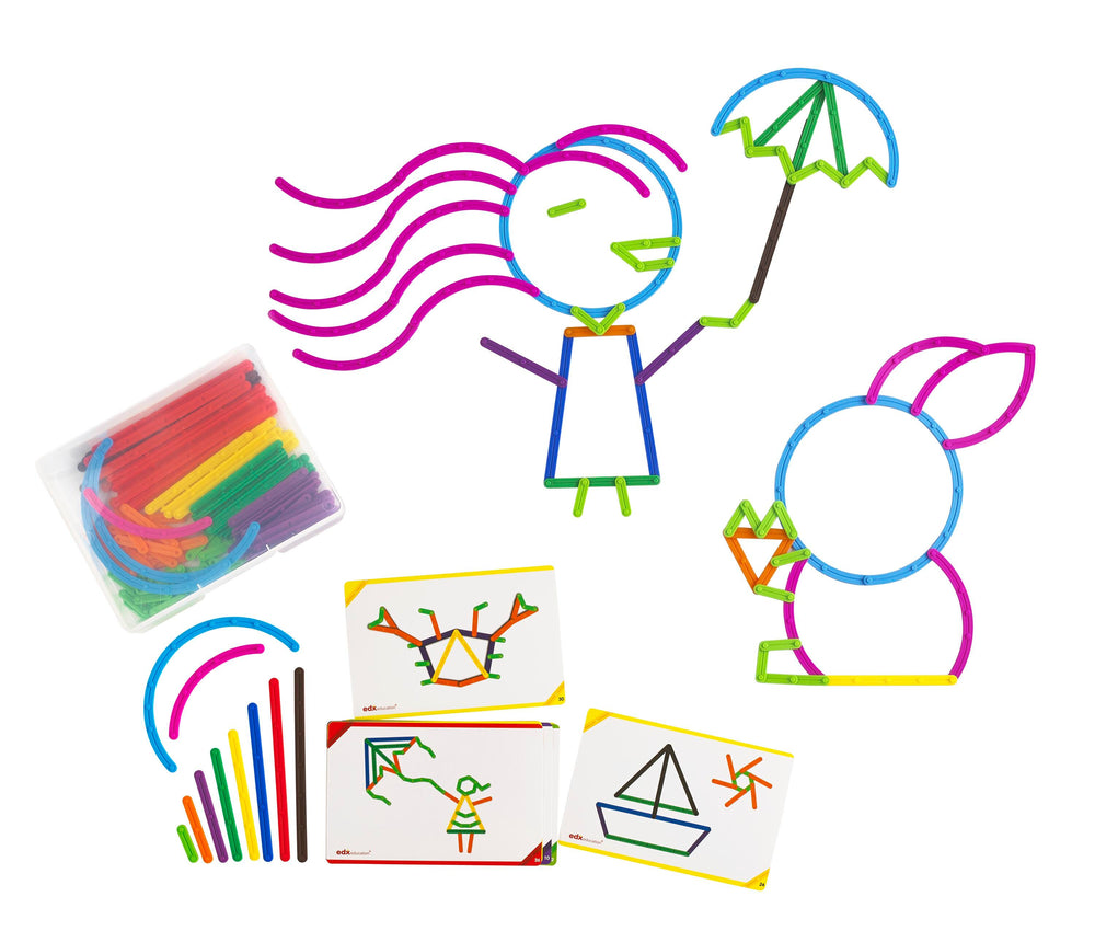 EDX Education Junior GeoStix, 200 Assorted Color Construction Sticks with 30 Activity Cards