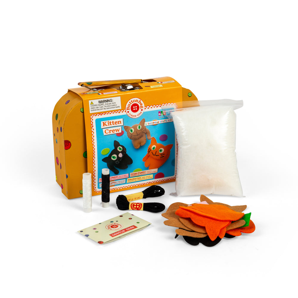 These little kittens are perfect for cat-lovers and anyone who would like a cat.All packed in a lovely little suitcase the kit contains full instructions and everything you need to make 3 cute kittens.With pre-cut shapes in super-soft craft felt, they are very easy to sew we've put an age guide of 8 + but judging by the reaction in the studio, we suspect they'll be a big hit with all ages.