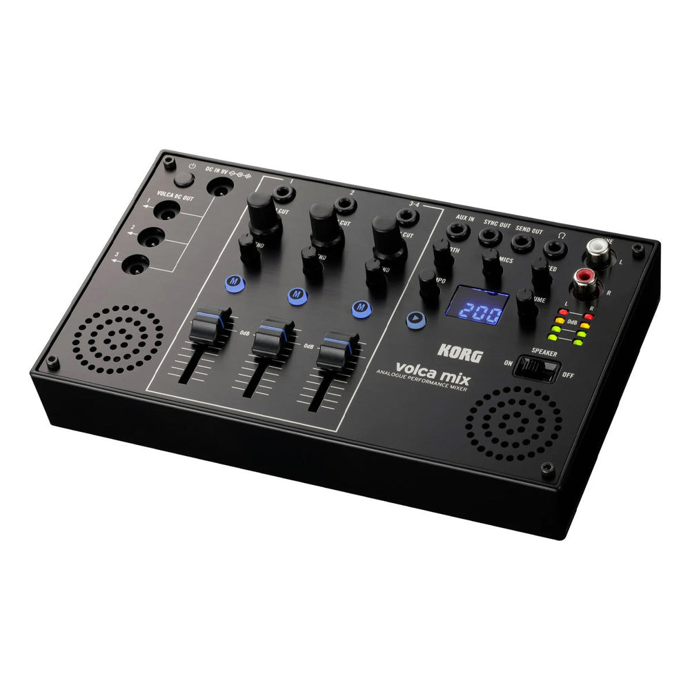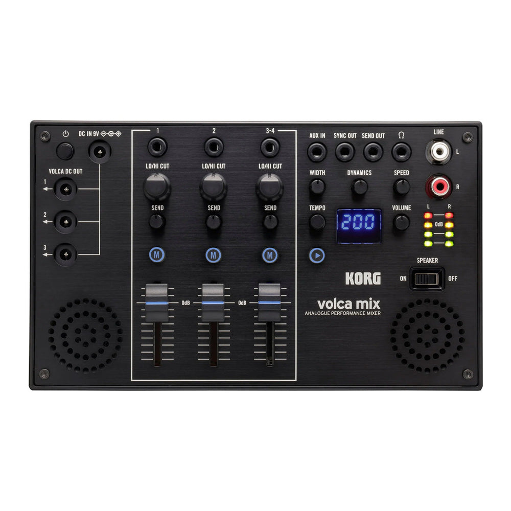 • Power three Volca units simultaneously via dedicated DC outputs—no extra adapters needed • Shape your sound live with analogue LO/HI cut filters and smooth volume faders • Master your mix with built-in stereo speakers, headphone monitoring, and LED VU metering • Add depth and movement using all-analogue master effects including compression and sidechain • Sync and control your entire setup with dedicated tempo knob and play function • Connect external gear or effects with stereo AUX send/return and an additional input channel, Introducing the Korg Volca Mix The Korg Volca Mix is the ultimate compact analogue mixer, built specifically to bring your Volca setup to life. Whether you're producing in a project studio or performing live, this intuitive unit offers hands-on control and powerful sound-shaping tools in a portable format. With four analogue channels, built-in stereo speakers, and a suite of dynamic effects, the Volca Mix lets you mix and manipulate multiple Volcas or external devices effortlessly. It also doubles as a power hub, supplying up to three Volca units directly via included cables. From its solid aluminium faceplate to its high-quality filters and performance-friendly layout, the Volca Mix is a must-have for any electronic musician looking to streamline their setup and expand their creative possibilities. Compact, capable and ready to perform Designed to fit seamlessly into your Volca rig, the Volca Mix offers two mono and one stereo input with vertical faders for precise level control. Each channel includes a LO/HI CUT filter, letting you sculpt frequencies on the fly with natural analogue warmth. Sync, control and expand your setup Take full command of your Volca collection with built-in sync, play, and tempo controls. An additional AUX input and send/return jacks allow you to connect external gear, adding even more flexibility and sonic variety to your setup. Power three Volcas with one supply No more juggling adapters or tangled cables—three DC out jacks and included cables let you power multiple Volcas from the Volca Mix itself. It’s a tidy, efficient solution for gigging or home use. Built-in effects for a polished sound The all-analogue master section features a stereo expander, sidechain compressor, and dynamic EQ, letting you add energy and cohesion to your mix. Perfect for crafting live sets with a professional edge. What's in the box? - Korg Volca Mix - AC adapter - 3 x DC-DC cables - 3 x audio cables