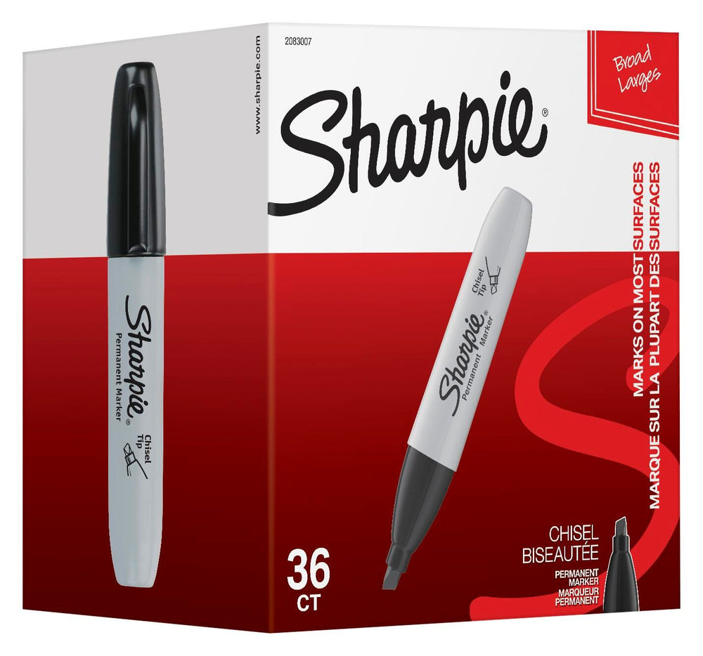 Sharpie Permanent Markers, Chisel Tip, Black, Pack of 36