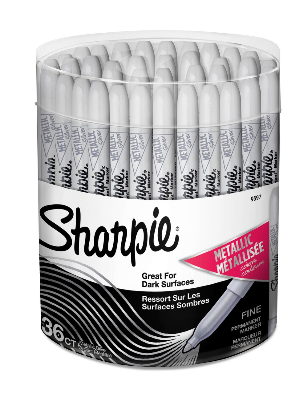 Sharpie Metallic Permanent Markers, Fine Point, Silver, Pack of 36