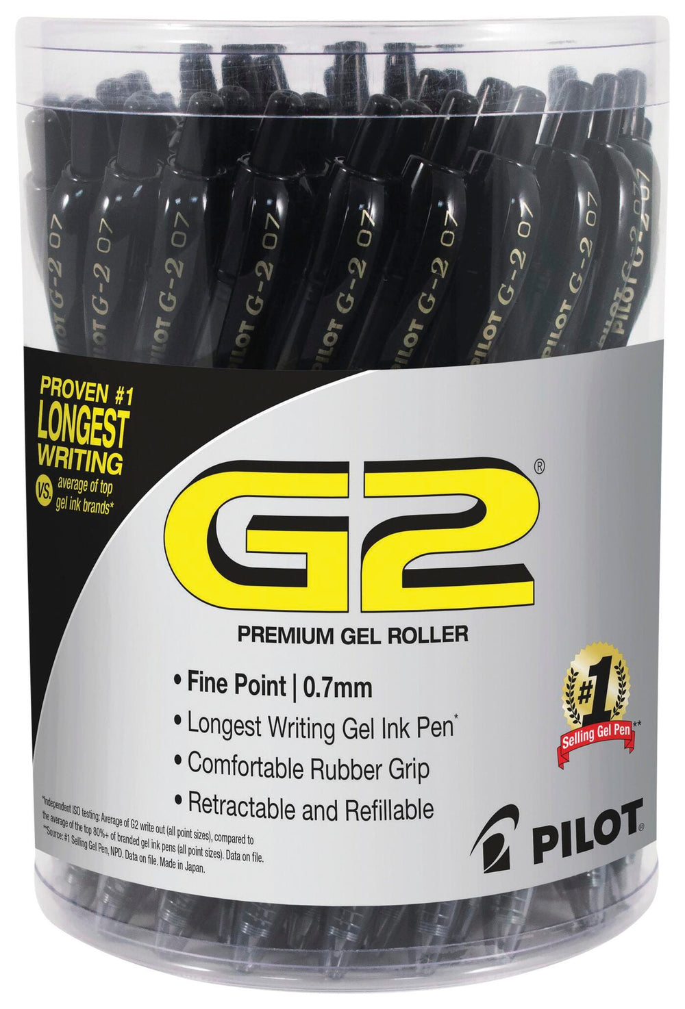 Pilot G2 Premium Retractable Gel Ink Rolling Ball Pen, Fine Point, Black Ink, Pack of 36