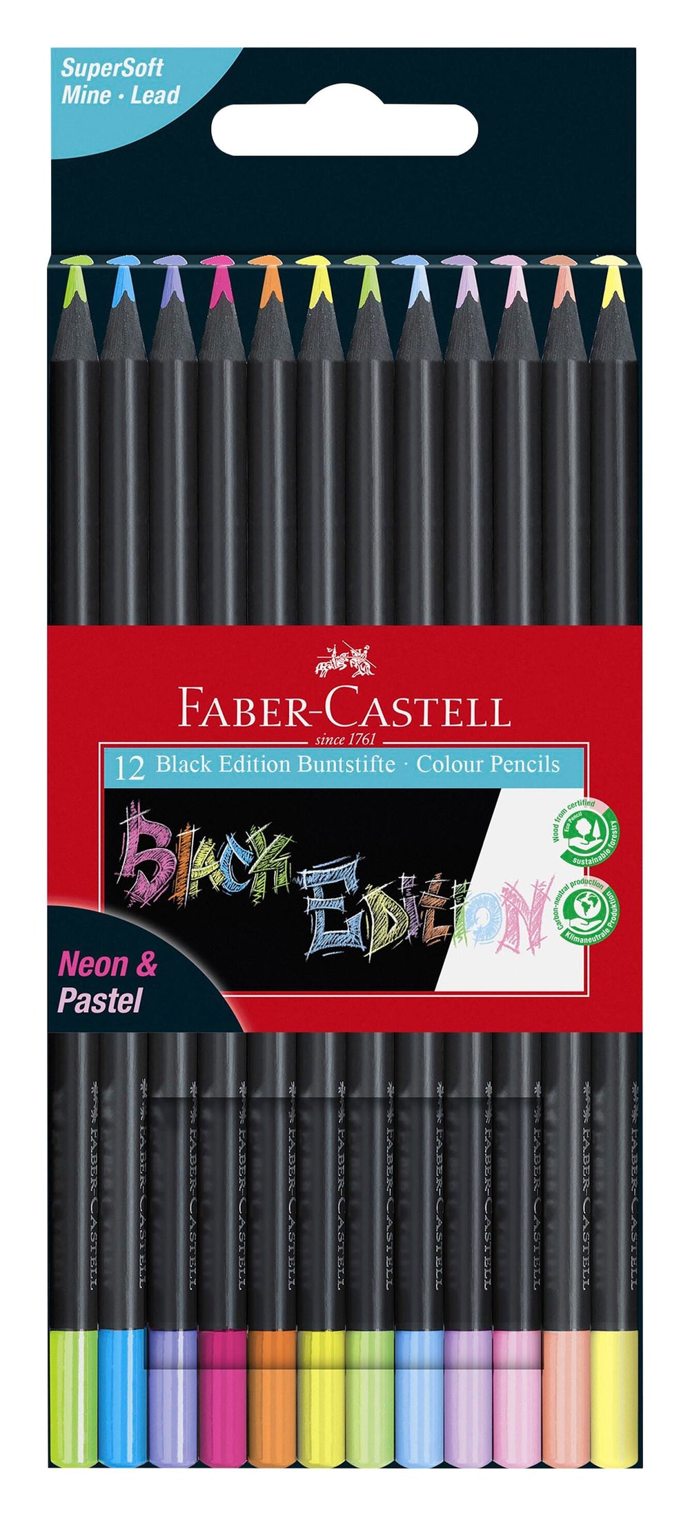 Faber-Castell Black Edition Colored Pencils, Assorted Neon and Pastel Colors, Set of 12